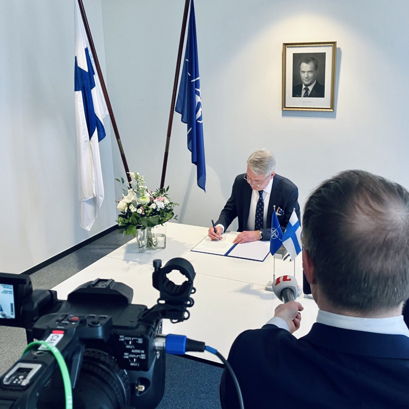 Pekka Haavisto, Ministri i Jashtëm finlandez, përfundoi procesin e anëtarësimit duke i dorëzuar një dokument zyrtar Sekretarit të Shtetit të SHBA Antony Blinken, në selinë e NATO-s në Bruksel.