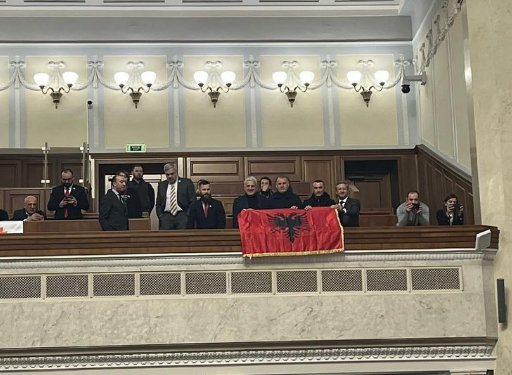 Po ashtu, Majko ka qenë i pranishëm edhe në Parlament ku në një foto shihet që kanë shpalosur flamurin shqiptar. /arbresh.info/