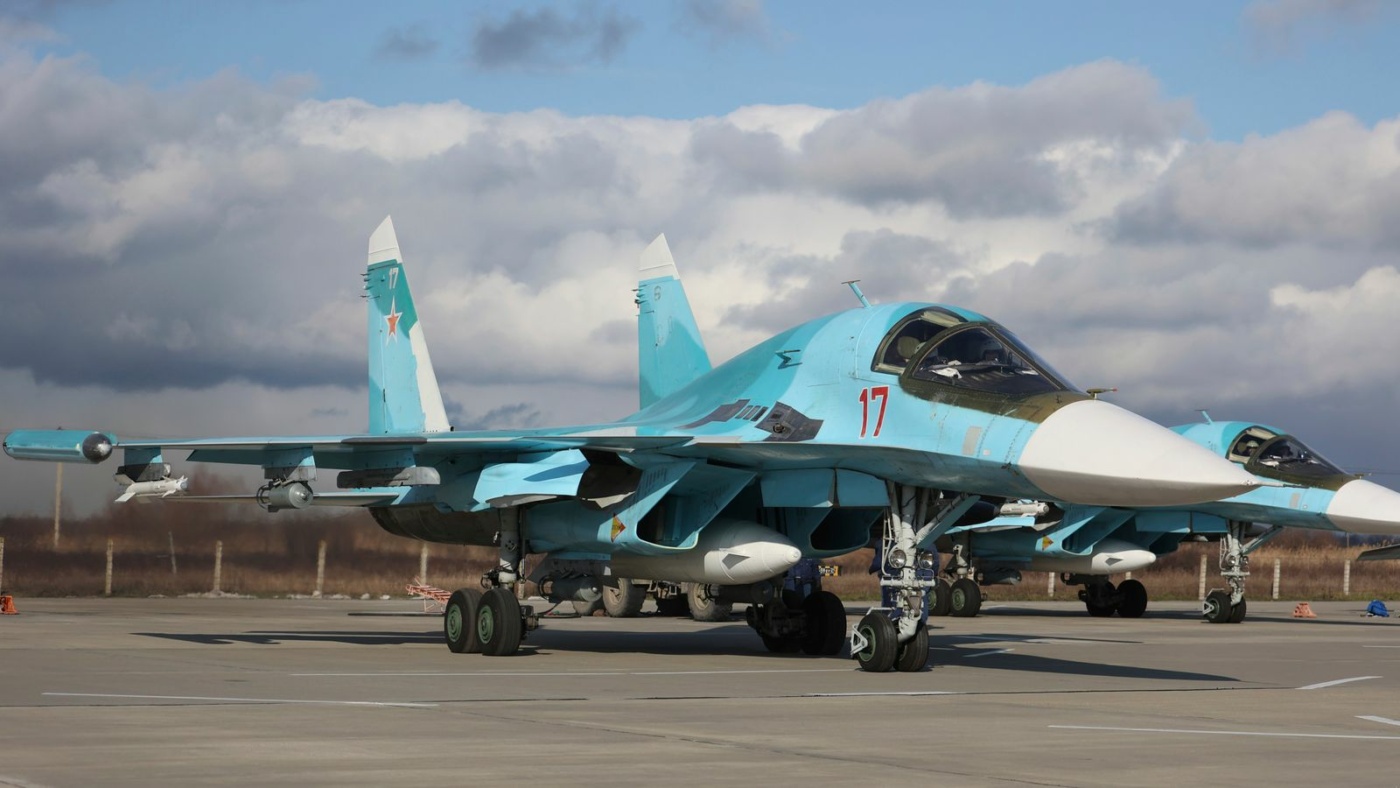 Imazhet satelitore të shpërndara nga burimi që supozohet se tregojnë dy avionë luftarakë-bombardues SU-34 në bazën ajrore Morozovsk në Rusinë jugore, si dhe një strukturë të bardhë përpara sulmit.
