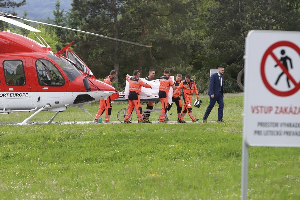 Shumë punonjës të shërbimit të urgjencës shihen duke shtyrë shtratin e spitalit kur Fico mbërriti në spitalin e Banska Bystrica pasi u transportua me ambulancë ajrore.