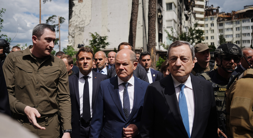 Presidenti francez Emmanuel Macron, kancelari gjerman Olaf Scholz dhe kryeministri italian Mario Draghi mbërritën në Kiev të enjten./abcnews.al/