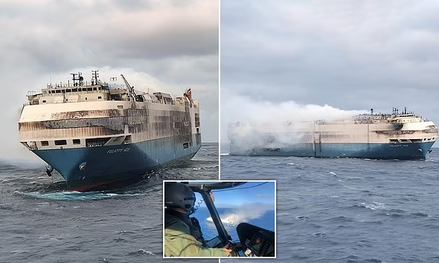 Një operacion i gjerë kishte nisur për shuarjen e zjarrit teksa anija kishte lundruar për disa ditë pa asnje ne bord.