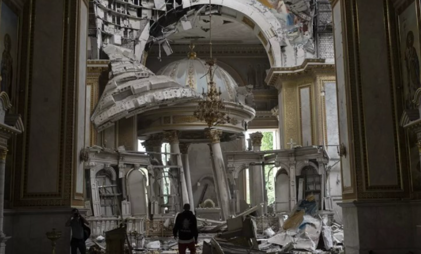 Zëdhënësi i ushtrisë ukrainase deklaroi se një raketë kishte goditur katedralen ortodokse në qendër të qytetit.
