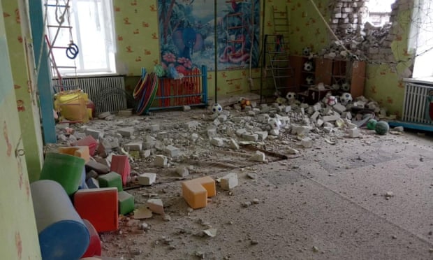 Kopshti i granatuar i fëmijëve gjendet në Stanytsia Luhanska, një qytet i vogël në vijën e parë të frontit së Ukrainës kundër separatistëve të mbështetur nga Moska, raporton The Guardian.