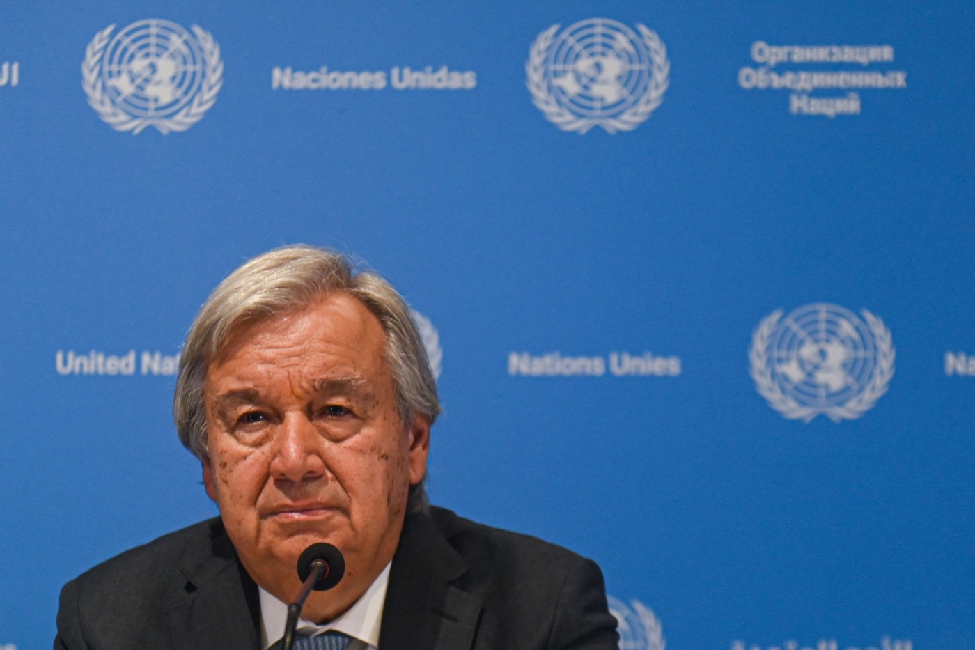 United Nations Antonio Guterres Secretary General listens to a question by a journalist during a press conference, ahead of the G20 Summit in New Delhi, India on September 8, 2023. (Photo by Kabir Jhangiani/NurPhoto via Getty Images)