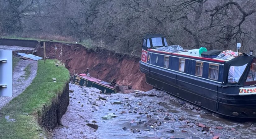 Në Shropshire është shpallur gjendje e jashtëzakonshme pasi një vrimë e madhe u hap në një kanal, e përshkruar nga policia si një gropë. Dy anije ranë në vrimë, ndërsa dy të tjera mbetën të varura në mënyrë të rrezikshme në buzë.