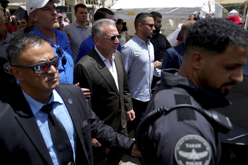 White House special envoy Steve Witkoff, centre, arrives to meet families of hostages at the plaza known as the hostages square in Tel Aviv, Israel, Saturday, Aug. 2, 2025. ( AP Photo/Ariel Schalit)