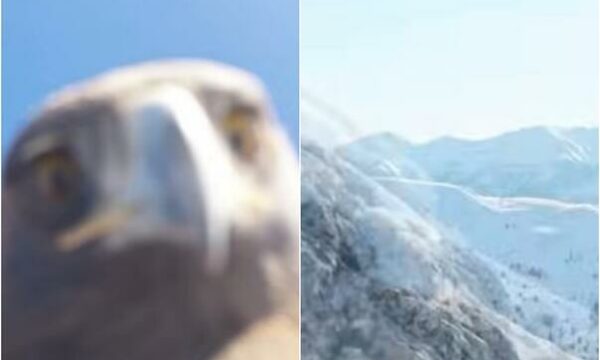 Videoja tregon shqiponjën duke u ulur papritur, duke marrë dronin dhe duke e çuar atë në një zonë malore të vështirë për t’u arritur.
