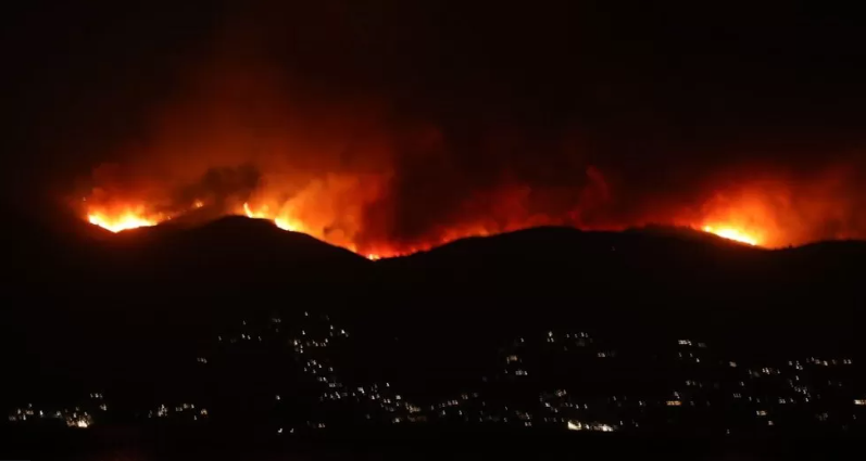 Njerëzit në zonat e Santa, Megoula, Porta, Palia, Perithia dhe Sinies në ishull u është thënë të evakuohen.