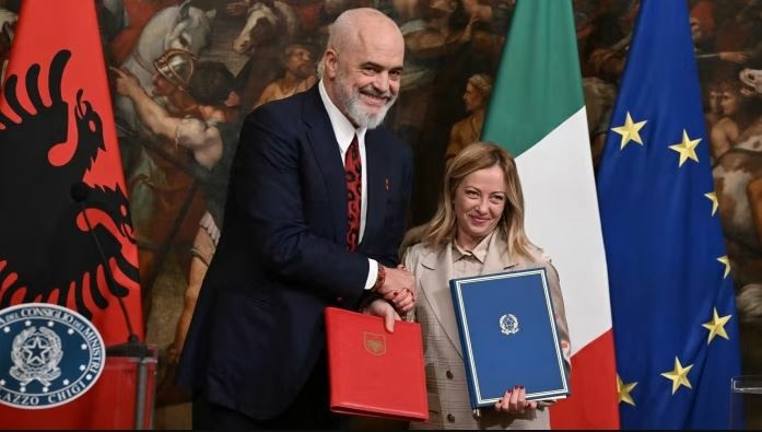 Të hënën kryeministri i Shqipërisë, Edi Rama dhe kryeministrja e Italisë, Giorgia Meloni, nënshkruan në Romë marrëveshjen për forcimin e bashkëpunimit në fushën e migracionit./rel