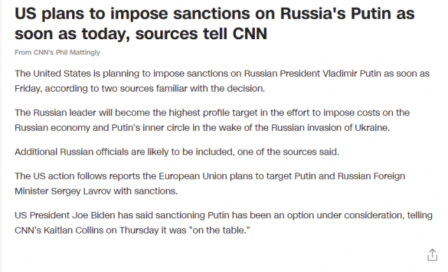 Udhëheqësi rus do të bëhet objektivi i profilit më të lartë, në mesin e përpjekjeve për të imponuar kosto mbi ekonominë ruse dhe rrethin e brendshëm të Putinit në vazhdën e pushtimit rus të Ukrainës.