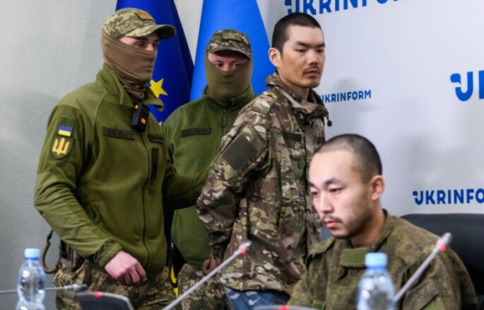 Të lidhur me duar dhe të veshur me veshje ushtarake në një konferencë të organizuar nga Ukrinform, agjencia kombëtare e lajmeve ukrainase, dyshja thanë: “E gjithë Rusia që na ka ushqyer janë gënjeshtra.