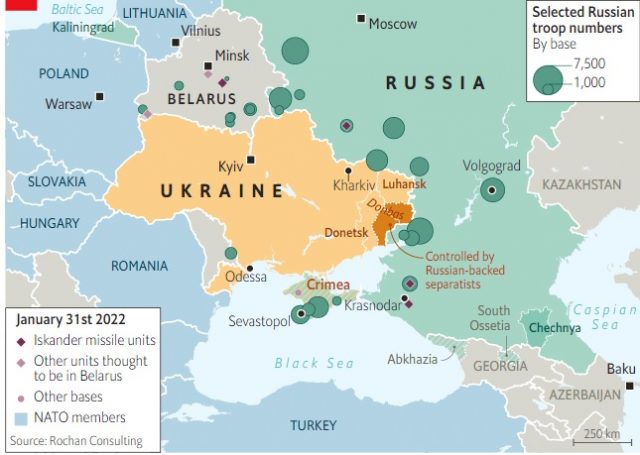 Kriza në kufirin Rusi-Ukrainë vazhdon të jetë e tensionuar. Më 27 janar, Joe Biden, presidenti i Amerikës, i tha Volodymyr Zelensky, homologut të tij ukrainas, se ekzistonte mundësia që Rusia të pushtonte Ukrainën në shkurt. Më 31 janar Rusia iu bashkua Amerikës në një seancë speciale të Këshillit të Sigurimit të OKB-së. Ndërkohë mediat sociale ruse janë të mbushura me video të trupave ushtarakë, raporton The Economic.