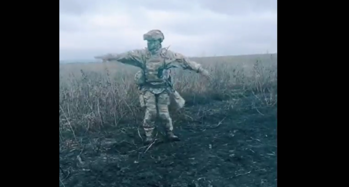 Ndërkohë që SHBA dhe BE flasin për një sulm të shpejtë nga Rusia ndaj Ukrainës, ky ushtar shfaqet duke kërcyer.
