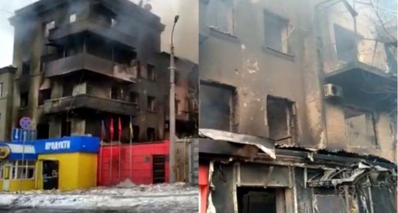 Fatkeqësisht, pamjet në video fillojnë me Konsullatën shqiptare, zyrën dhe dyqanin që janë totalisht të shkatërruar në “Akademik Proskura 1”.