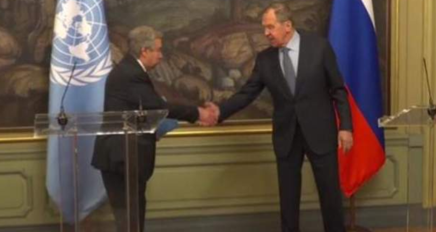 Konferenca e përbashkët për shtyp e sekretarit të përgjithshëm të OKB-së Antonio Guterres dhe ministrit të jashtëm rus Sergei Lavrov është zhvilluar me tone të ashpra.