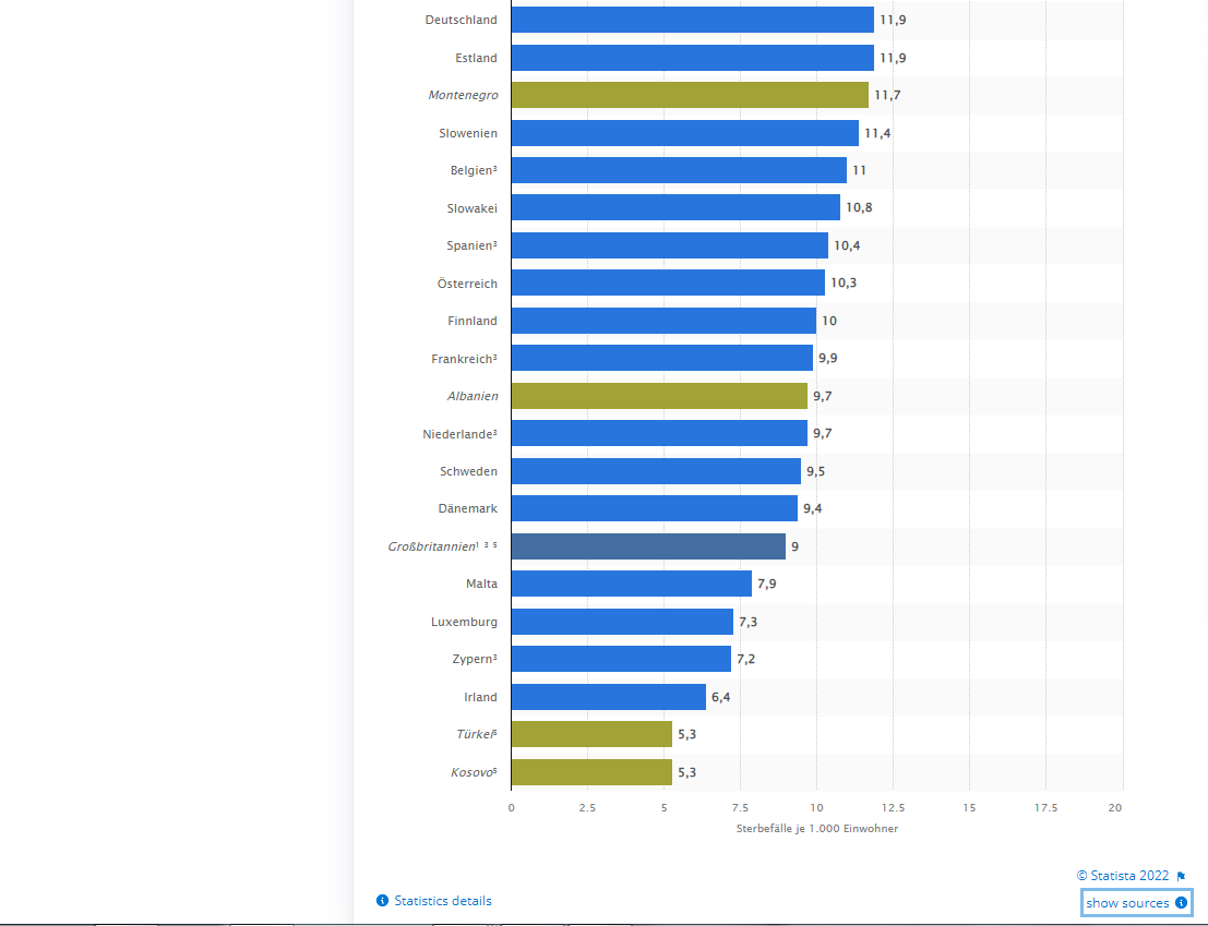E Gjermania që i ka publikuar shifrat, ka 11.9 vdekje në 1.000 banorë.