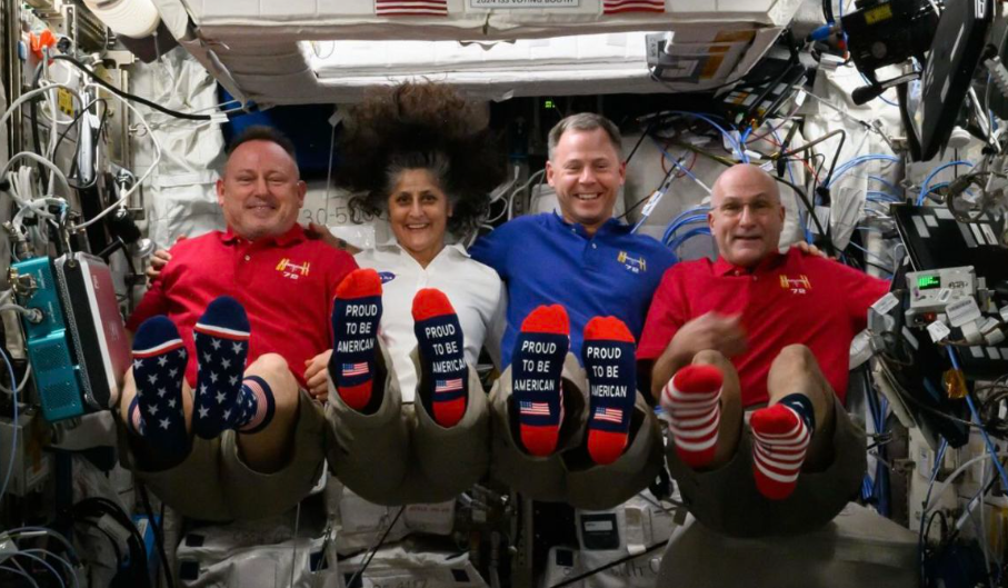 Astronautët e NASA-s postuan një foto të tyre në Instagram të veshur me çorape me ngjyra patriotike në ditën e zgjedhjeve. Çorapet e dy prej astronautëve shkruanin “Krenar që jam amerikan”.