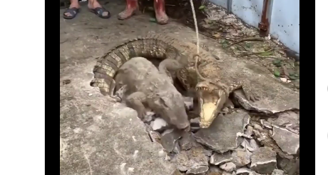 Një video që dokumenton ngjarjen e jashtëzakonshme u shpërnda shumë shpejt në rrjetet sociale. Një burrë iu afrua me kujdes krokodilit të parë, për ta vënë në kontroll. Më pas del një krokodil i dytë.