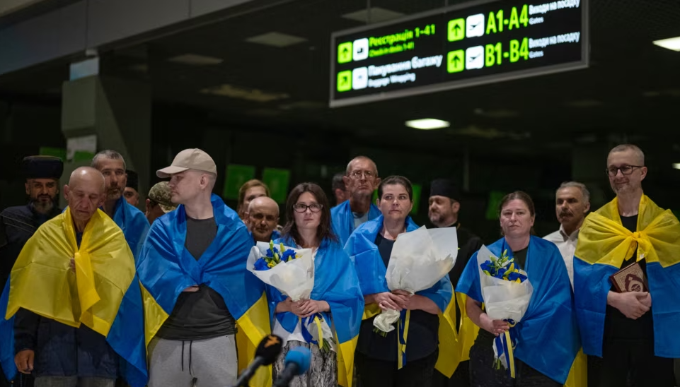 Dhjetë ukrainas të burgosur prej vitesh janë liruar nga Rusia me ndërmjetësimin e Vatikanit. Presidenti i Ukrainës Volodymyr Zelenskyy njoftoi të premten lirimin e tyre. Një pjesë e grupit mbërriti gjatë natës në Aeroportin Ndërkombëtar të Kievit, i cili është mbyllur që nga fillimi i luftës. Ishte hera e parë në më shumë se dy vjet që aeroporti priti pasagjerë. Në mesin e të liruarve ishte edhe zëvendëskryetari i organizatës Mejlis, Nariman Dzhelyal, një organ përfaqësues i popullsisë tartare të Krimesë që u zhvendos në Kiev pasi Rusia aneksoi Krimenë.
