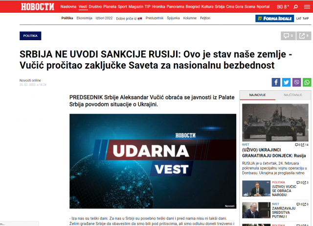 Presidenti serb, Aleksandar Vuçiq, sipas mediumit serb ‘Novosti’ në një adresim për media, ka thënë se e sheh të panevojshme çështjen e sanksioneve ndaj Rusisë, raporton arbresh.info.