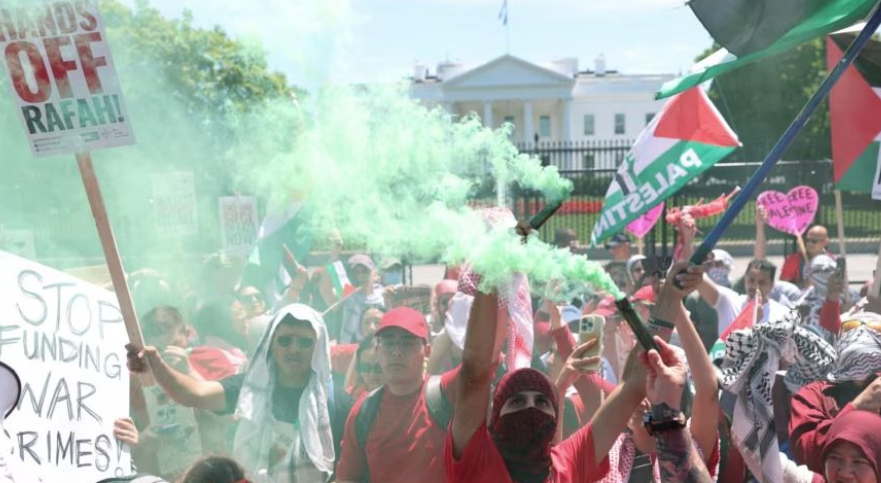 Aktivistët pro-palestinezëve kërkuan gjatë fundjavës dhënien fund të luftës në Rripin e Gazës dhe të mbështetjes amerikane për Izraelin. Ata u mblodhën rreth Shtëpisë së Bardhë të shtunën, në protesta për të cilat u shtuan masat e sigurisë, që përfshinë ndër të tjera edhe ngritjen e një rrethimi më të gjerë sigurie përreth Shtëpisë së Bardhë.