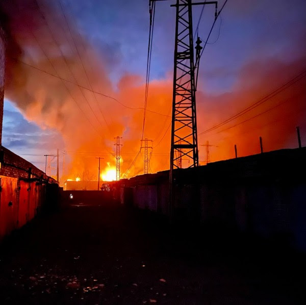 Fotot tregojnë tymin e zi të dendur që ngrihet mbi Lviv në drejtime të shumta.