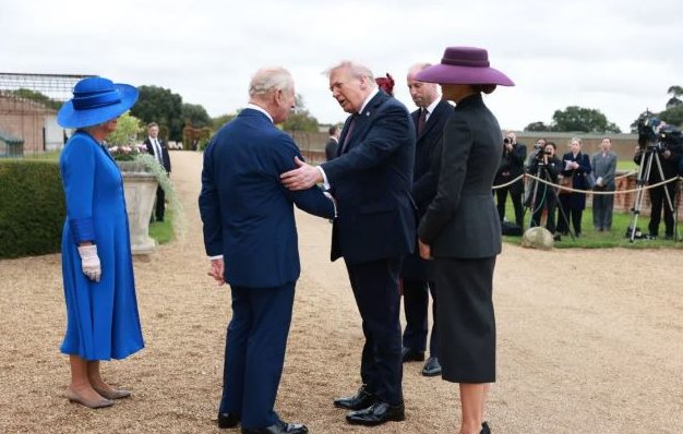 I shoqëruar nga bashkëshortja e tij, Melania, Trump u takua sapo zbriti nga helikopteri Marine One me Princin dhe Princeshën e Uellsit, William dhe Kate Midletton.