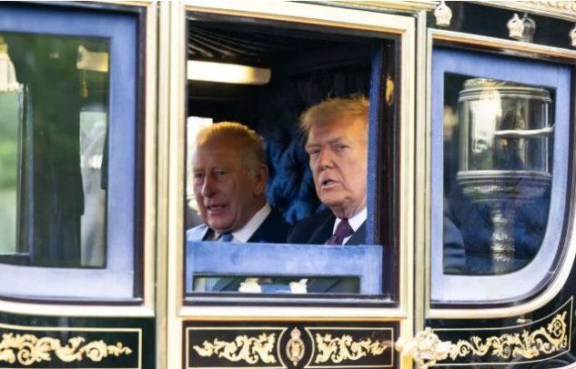 Mbreti Charles dhe presidenti Trump udhëtuan me karrocën mbretërore drejt Kështjellës Winsdor, ndërsa një tjetrën pas tyre, ishte Mbretëresha Camilla me Zonjën e Parë të Amerikës.