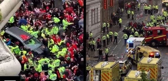 Katër fëmijë janë midis dhjetëra personave të plagosur pasi një makinë u përplas me turmën në paradën e Liverpool FC.