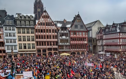 Dhjetëra mijëra njerëz kanë ndalë të shtunën nëpër rrugët e Frankfurtit, për të protestuar kundër partisë së të djathtës ekstreme Alternativa për Gjermaninë (AfD).