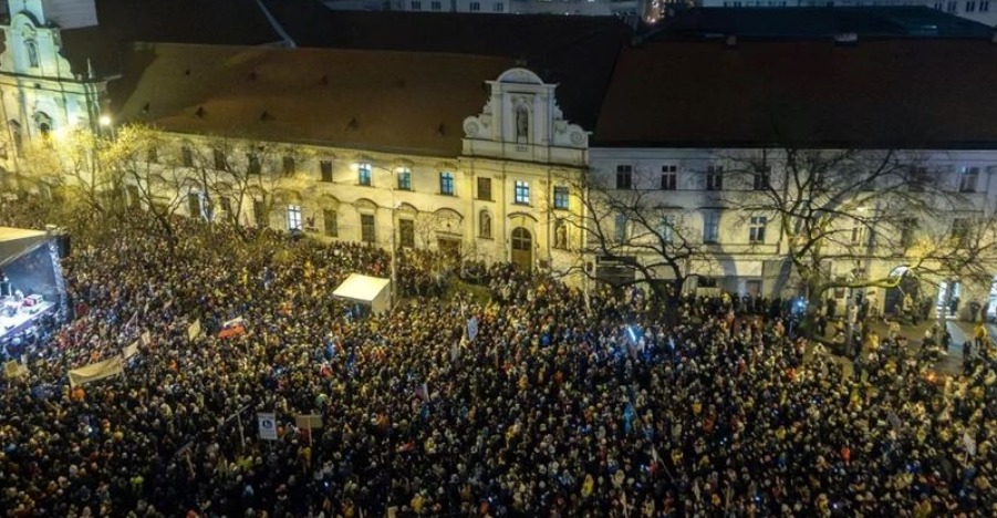 Another protest against Fico and his coalition trying to dismantle the rule of law in Bratislava, Slovakia. Even more people and cities joined, today. Strong support from Ukraine was also voiced today. pic.twitter.com/gnbju0SJx9