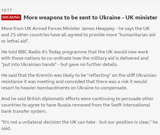 Ministri i Forcave të Armatosura të Mbretërisë së Bashkuar, James Heappey thotë se Mbretëria e Bashkuar dhe 25 vende të tjera kanë rënë dakord të japin më shumë “ndihmë humanitare ose ndihmë vdekjeprurëse”.