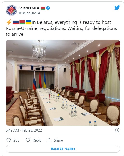 “Në Bjellorusi, gjithçka është gati për të pritur negociatat Rusi-Ukrainë. Në pritje të mbërritjes së delegacioneve”, tha ministria në një postim në Twitter rreth orës 9 të mëngjesit me kohën lokale.