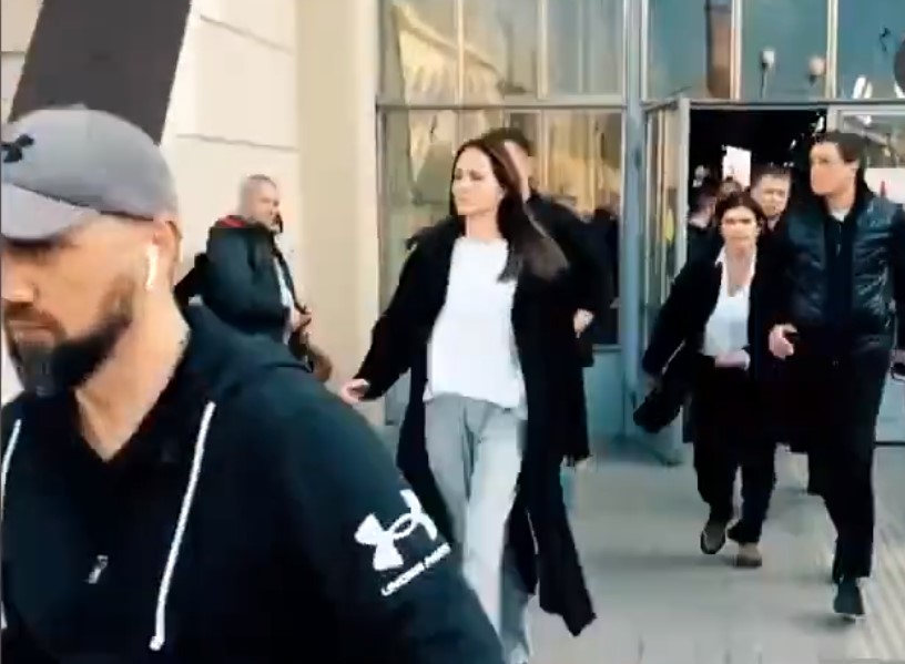 Në video, të postuar në Twitter, një sirenë e sulmit ajror mund të dëgjohet në prapavijë, ndërsa aktorja e filmit “Mr & Mrs Smith” nxiton drejt vendit të sigurt, raporton media britanike Express.co.uk.