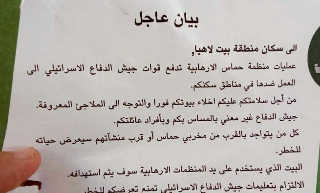 “Për sigurinë tuaj, nuk duhet të ktheheni në shtëpi deri në një njoftim të mëtejshëm nga IDF”, thuhej në fletëpalosje.