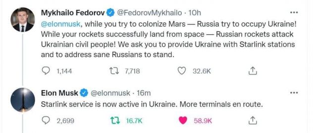 Musk iu përgjigj zëvendëskryeministrit të Ukrainës. Musk ka shkruar në Twitter se: “Shërbimi i Starlink tash është aktiv në Ukrainë. Më shumë terminale janë rrugës”./21media/