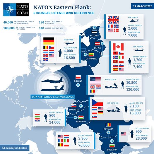 “Ne përballemi me një realitet të ri për sigurinë tonë për shkak të pushtimit të paligjshëm të Rusisë në Ukrainë. Si përgjigje, NATO ka përforcuar praninë e saj mbrojtëse në pjesën lindore të Aleancës me më shumë trupa, aeroplanë dhe anije”, thuhet në njoftimin zyrtarë të NATO-s./arbresh.info/
