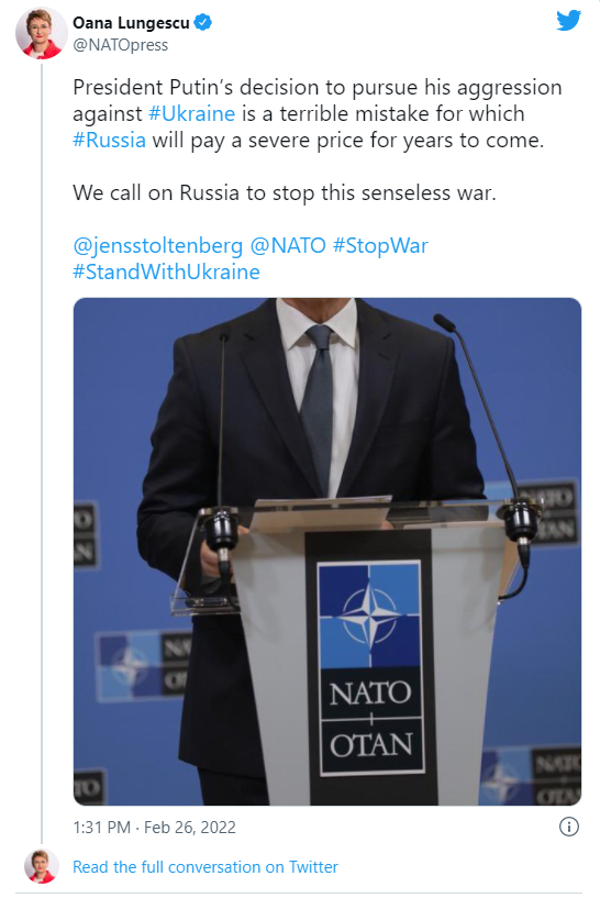 — Oana Lungescu (@NATOpress) February 26, 2022