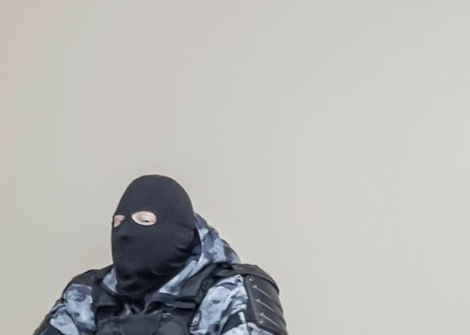 Fotografia e një oficeri policie të maskuar i ulur nën portretin e presidentit rus, Vladimir Putin u bë simbol i protestave të vitit 2021 kundër burgosjes së kritikut të Kremlinit, Alexei Navalny.