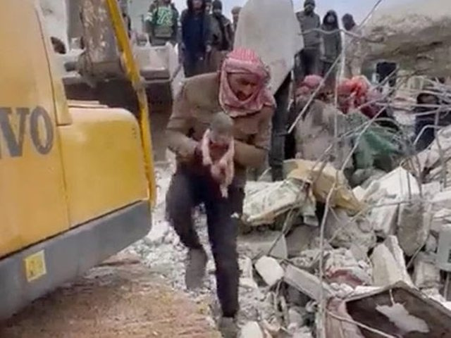 Pavarësisht kushteve më të pafavorshme, mjekët në zonën e Jindires, në veri të Aleppos, arritën të lindnin foshnjën dhe ta nxirrnin nga rrënojat për të siguruar mirëqenien e tij, por nuk mundën ta shpëtonin nënën.