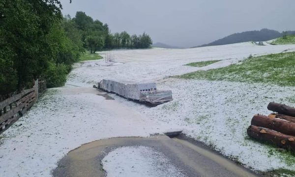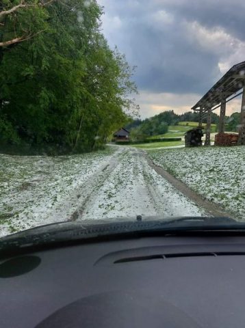 Një uebsajt slloven që merret me raportimet mbi fenomenet meteorologjike, neurje.si, ka publikuar disa fotografi të luginës Tuhinjska në Slloveni, ku sot ka rënë breshër i madh.