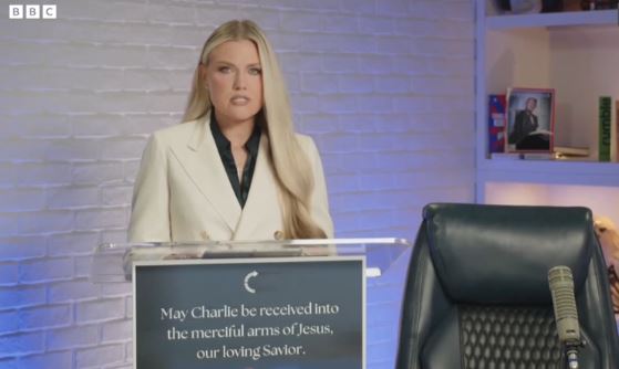Në një transmetim të drejtpërdrejtë, duke qëndruar pranë karriges bosh të burrit të saj që ai e përdorte gjatë regjistrimeve të podkasteve, ajo citoi Biblën dhe foli për dashurinë e tij për Presidentin Donald Trump, Zëvendëspresidentin JD Vance, Shtetet e Bashkuara dhe dy fëmijët e çiftit.