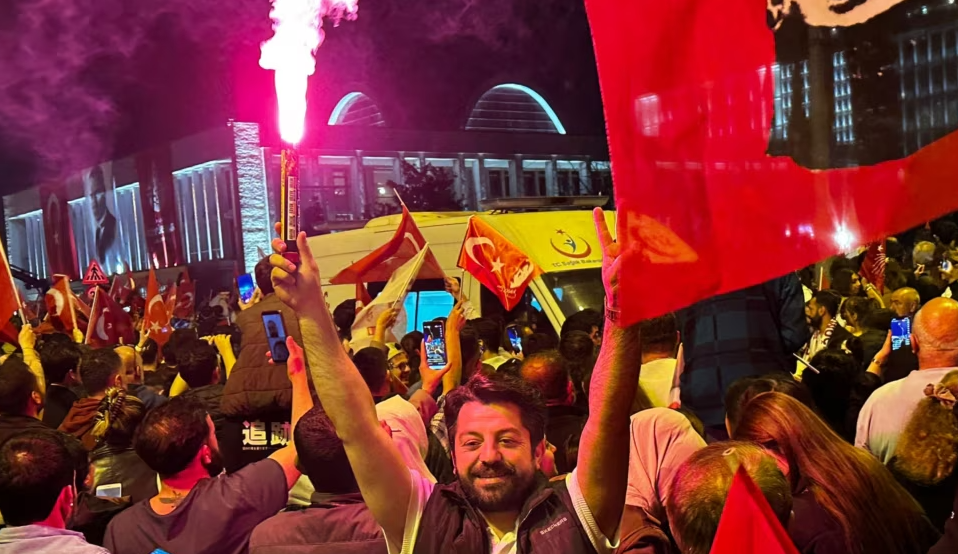 Në Ankara, kryeqytetin turk, mijëra mbështetës u mblodhën gjatë natës duke valëvitur flamujt e CHP-së për të ndjekur një fjalim të kryetarit të bashkisë Mansur Yavas, i cili mundi kundërshtarin e tij të AKP-së, në një tjetër goditje për presidentin Erdogan.