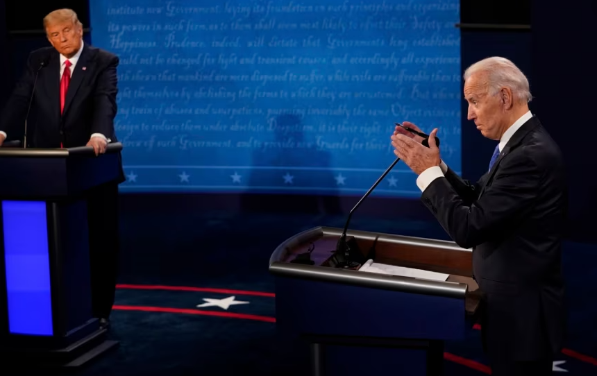 Presidenti Biden dhe ish Presidenti Trump debatuan dy herë në vitin 2020. Debati i tretë u anulua pasi zoti Trump, që në atë kohë ishte president, doli pozitiv me COVID-19 dhe nuk pranoi të debatonte pa qenë i pranishëm në sallë.