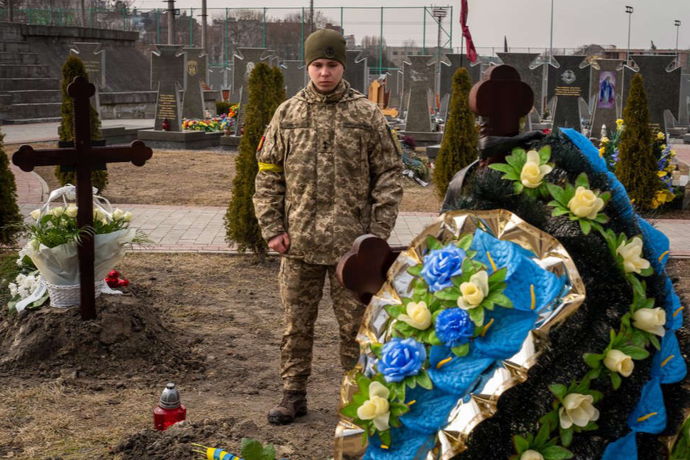 Vadym Yarovenko udhëtoi vetëm për të parë mikun e tij të varrosur. Ai pret radhën për t’u thirrur.