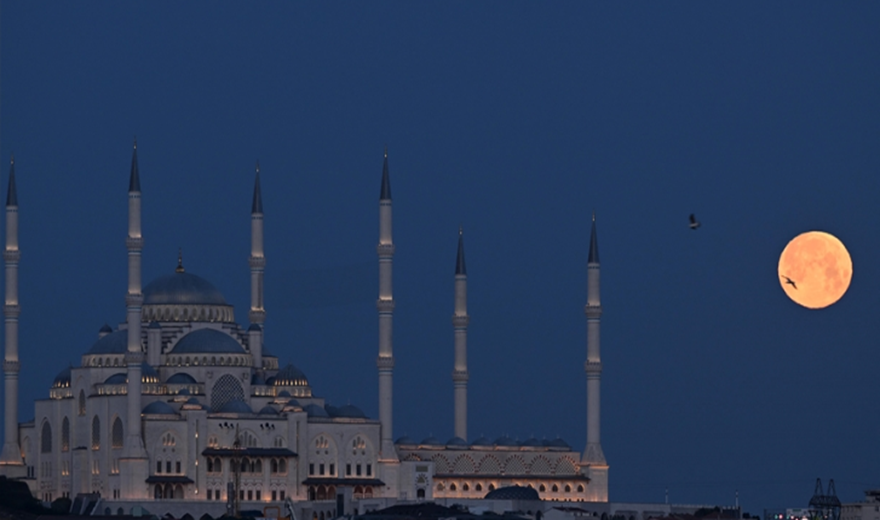 Pamjet mbresëlënëse janë kapur nga Hëna e plotë në kuadratin e Xhamisë së Madhe Çamlıca si dhe mbi Kullën Galata në metropolin turk, raportojnë mediat turke.