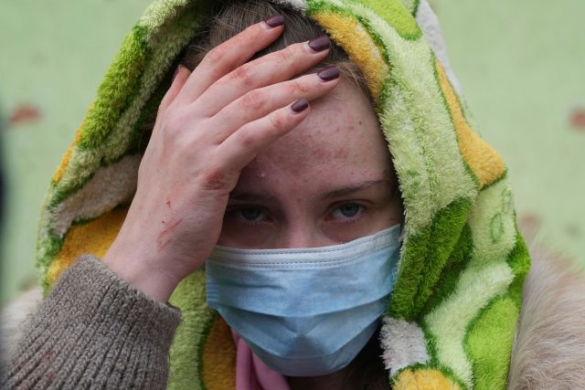 A woman walks outside the damaged by shelling maternity hospital in Mariupol, Ukraine, Wednesday, March 9, 2022. A Russian attack has severely damaged a maternity hospital in the besieged port city of Mariupol, Ukrainian officials say. (AP Photo/Evgeniy Maloletka)