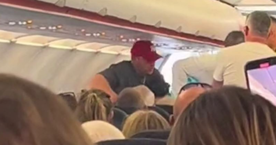 Në një video të postuar në rrjetet sociale, janë regjistruar përpjekjet e ekuipazhit të fluturimit EZY8235 për të ndaluar pasagjerin.