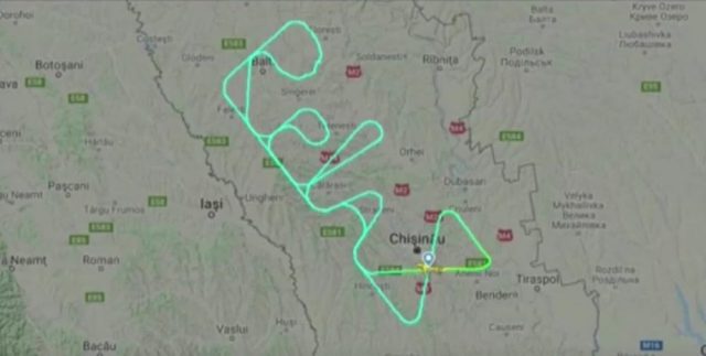 Faqja e internetit për gjurmimin e avionëve FlightRadar pikasi “kaligrafinë” e pilotit që fluturonte rreth kryeqytetit Kishinau./a2cnn
